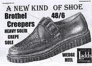 到了二战时期,松糕鞋终于有个好听点的名字了,叫“Brothel Creeper”。因为这种鞋的厚鞋底耐操耐磨,战士们爱不释手,打完战后他们各自把鞋子抱回家。