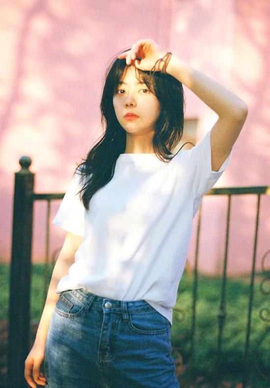 午后温柔的阳光洒在脸上,谭松韵的白T恤搭配牛仔裤,看起来有满满的校园气息;