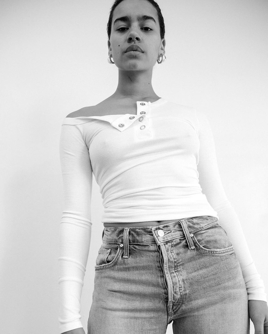 美国品牌The line by k就是一个很擅长给基础款加入一点设计巧思的品牌,比如简单的白色T恤,在侧面融入设计感曲线的纽扣,就能让一件看起来普通的上衣变得不简单;