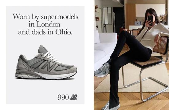 她们穿的是New Balance超经典的版型990,也是品牌最经典永恒的灰色,这款鞋从推出到现在已经有75年的历史。