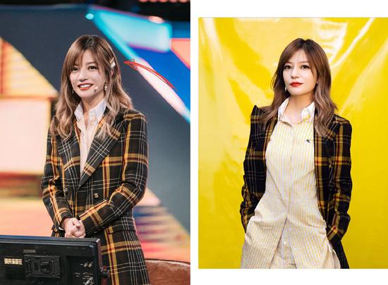 很多通勤的lady都需要穿西装,不想太隆重、显得特别刻意,试试看吴昕的纯黑西装,领口、扣子和袖口有了珍珠的点缀,看上去增添了几分女性的柔美。