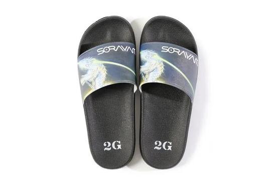 而这其中就包括两双拖鞋,两双鞋的主色调都是黑色,只是鞋面的配色不同,且两双鞋都打上了 Sorayama ,致敬画作的原作者空山基。