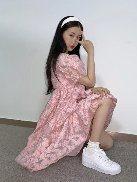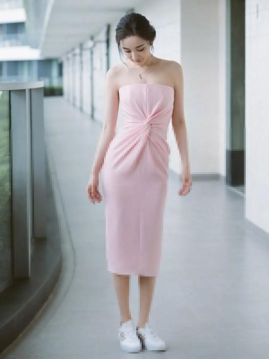 粉色裙和小白鞋组合甜美又清纯,既能让人看到满屏的少女感,小白鞋还能中和粉色的甜腻感。