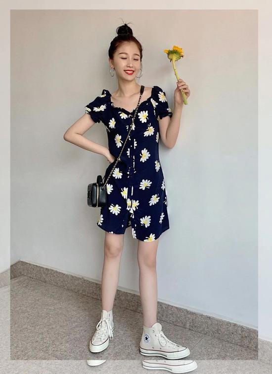 帆布鞋不仅能够搭配裤装,和碎花裙也是绝配,完美诠释了少女的青春气息。