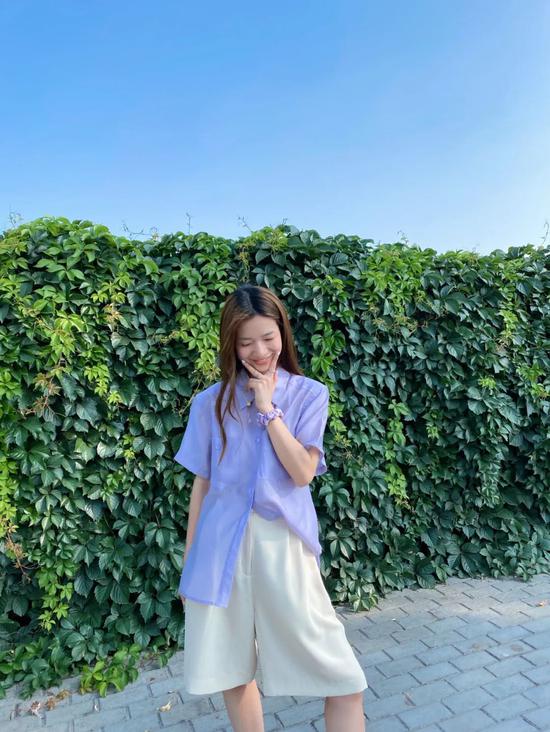 一般人都会觉得香芋紫不好搭,但我总结出了一个“傻瓜法则”,选比它浅的颜色👉清凉透气,材质差别👉丰富层次,视觉效果。
