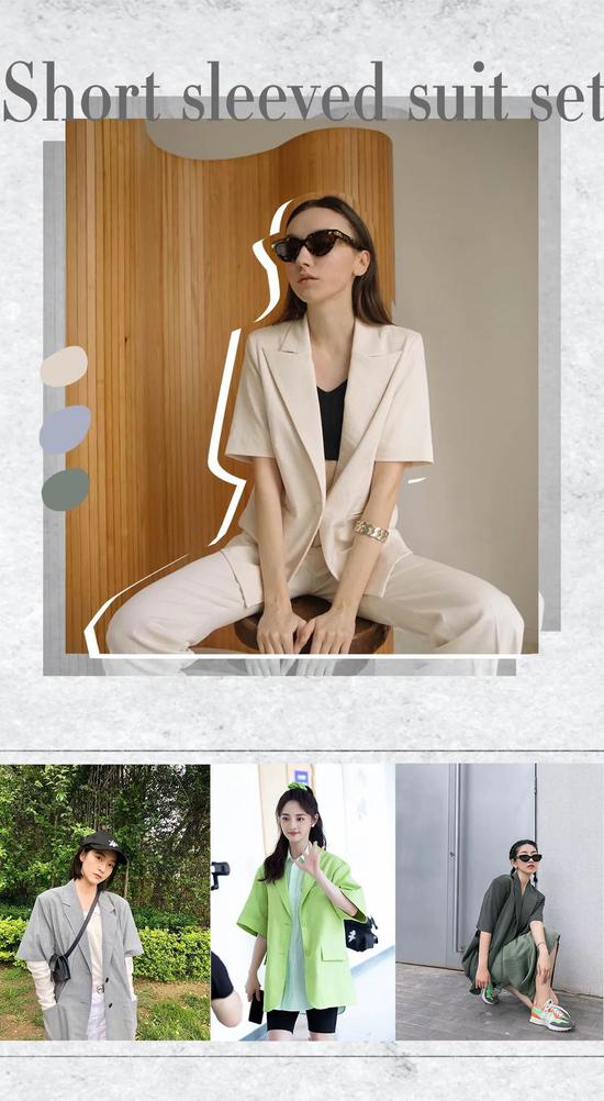 建议大家选短袖西装外套,不少当红小花私服里都有它的身影。