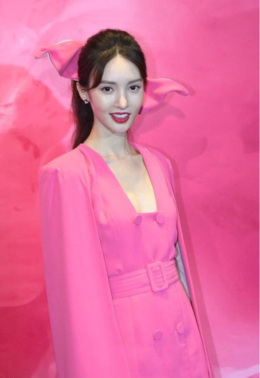 西装感的裙子十分亮眼,在领口处是方形领与V领的结合体,超级凸显出迷人精致的锁骨,芭比粉色也是非常性感粉嫩,搭配上头上的发饰更是精致十足。