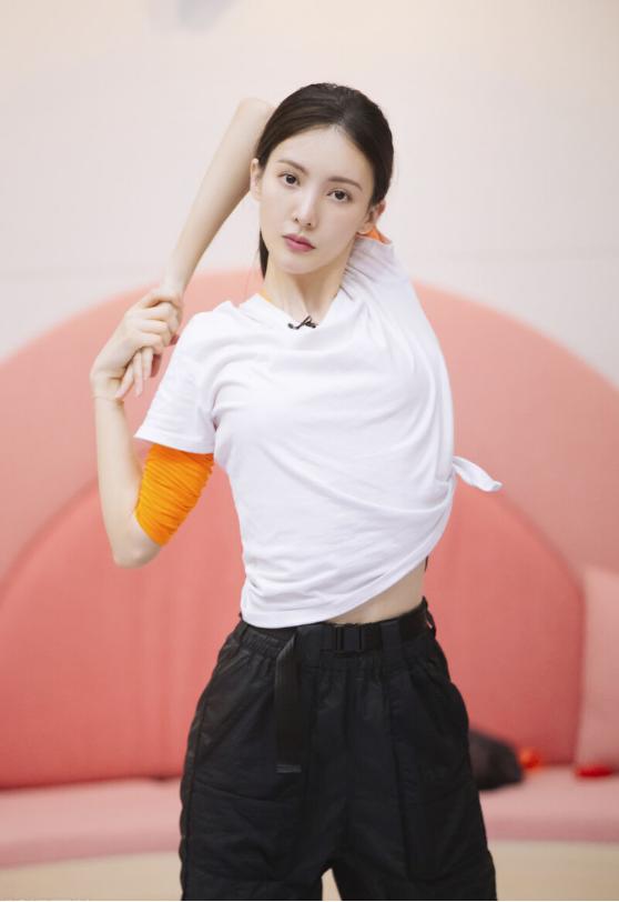 白色的T恤搭配黑色运动裤,十分休闲有活力的一身穿搭。干净的搭配更是能体现出清纯玉女的感觉。袖子上大批量的黄色运动套袖也是点睛之笔,更加时尚。