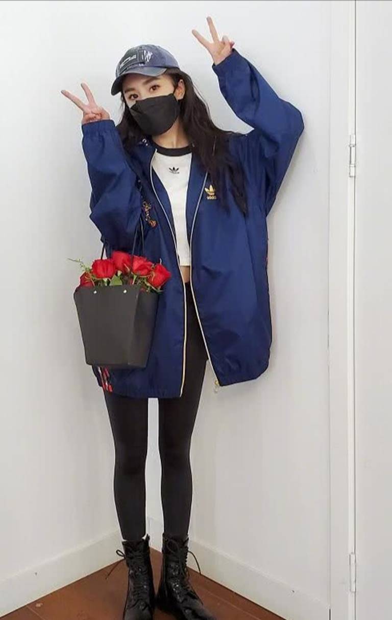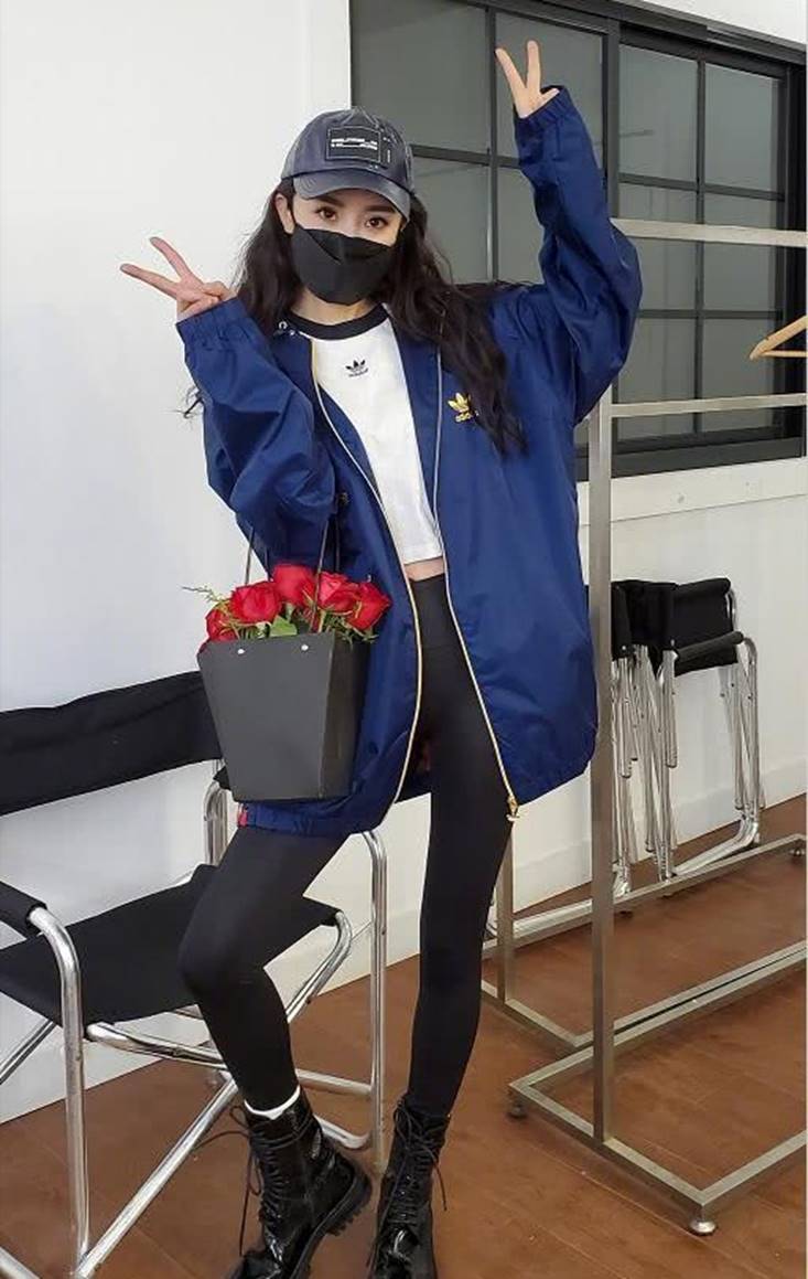 杨幂的这一身穿搭依旧很亮眼,藏蓝色连帽运动衫,搭配白色露脐装,再搭配上瑜伽裤之后,整个人依旧形成了一种上松下紧的穿搭模式,所以杨幂的腿依旧格外细长。其实这种运动风格的外套也是时尚女孩的出门必备,因为它能够很好地起到一个显瘦的作用,而且还能够防晒,所以这个穿搭的借鉴意义很大。再搭配上马丁靴之后,整个人都更加的时尚有个性。