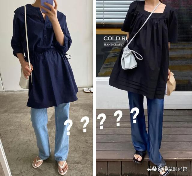想要把裙子穿得与众不同,叠穿确实是很好的方法,但一定不是上面这样。
