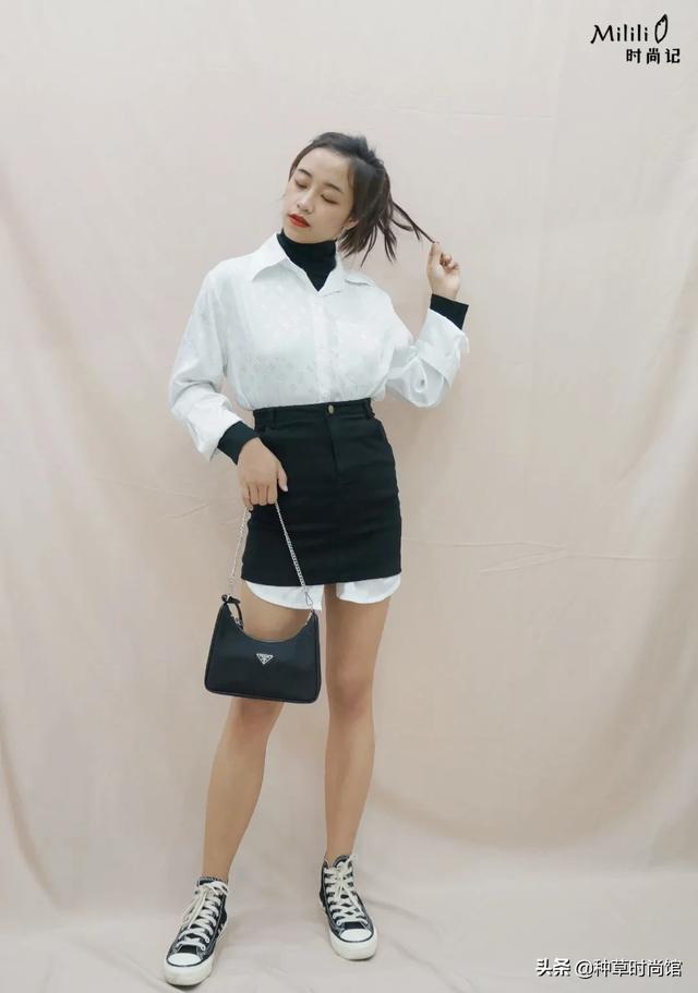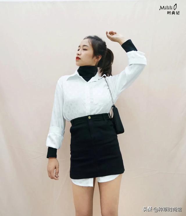 我这两天迷上了酷女孩风,这里选择了黑白配色,经典又不易出错。衬衫+内搭+半裙,几件单品进行层次感叠加,高级感就出来了。