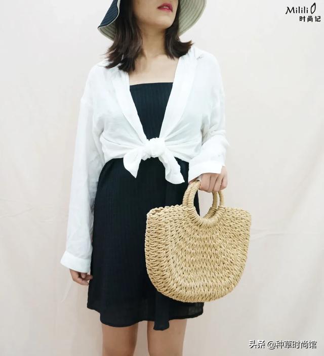 配饰对整体风格的影响也很大,这里我用到的是渔夫帽和草编包,看起来比较休闲度假风,但小可爱们要是换上皮质包包和穆勒鞋以后通勤穿也没问题。