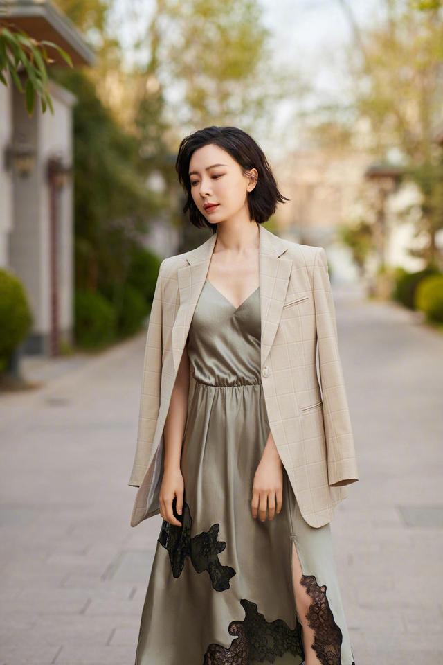 实用性搭配公式:西装外套+缎面吊带连衣裙,缎面颇富质感,日常出街分分钟get高级感,随时随地在街拍~陈数和温雅的搭配就是很好的例子,千万不要把西装外套规矩穿在身上,太out了!披在肩膀上自带强大气场,用于凹造型也是极为合适的。
