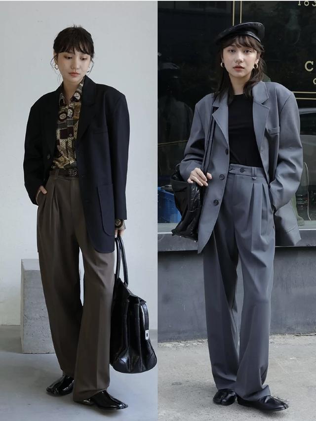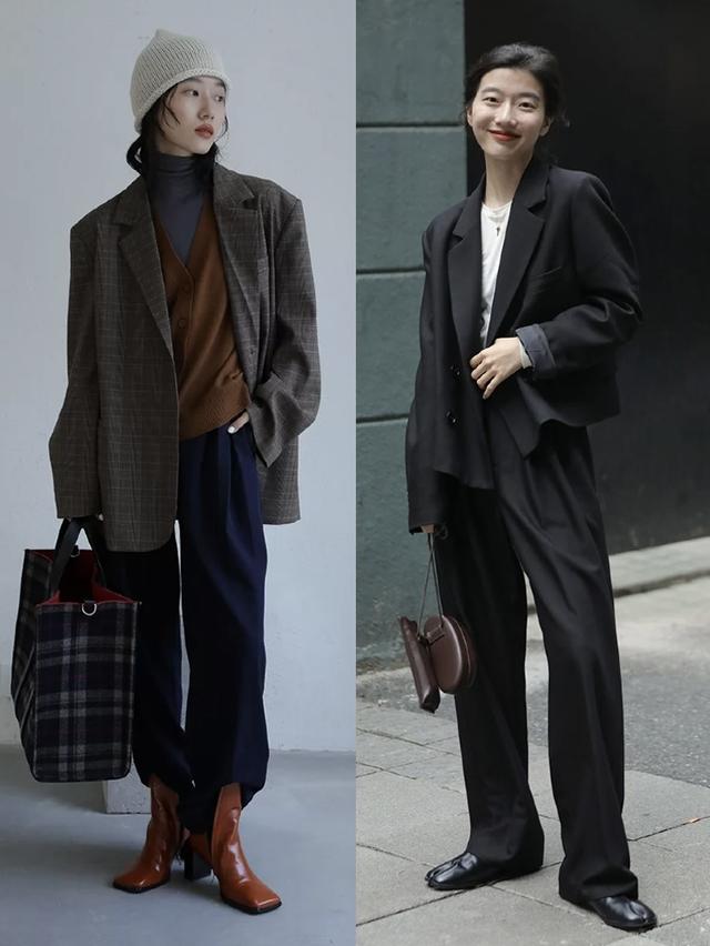 个子矮小的女生,也可以选择短款廓形西装,短款的廓形西装在搭配的时候,可更好利用层次叠穿的方法,穿出不同的美感。