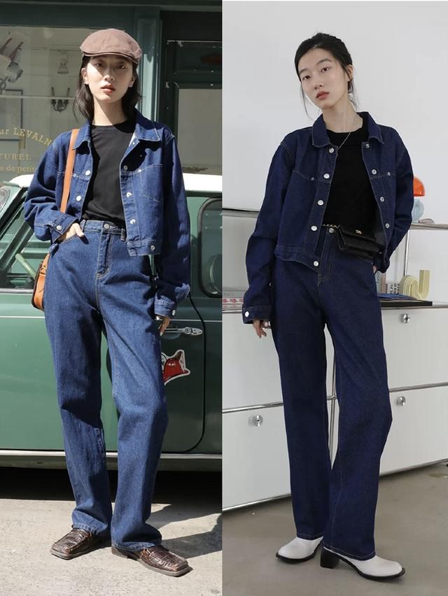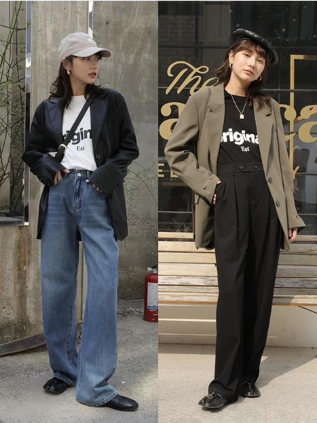 还有可以借鉴的穿法,就是将休闲化的西装,与牛仔阔腿裤在一起搭配,这样的风格随性而又自然,减龄效果也特别好。