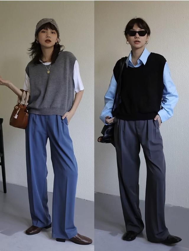 浅灰色的针织背心,与各种颜色都可以搭配,也符合韩流这种低调简约的个性,而黑颜色就会更加酷炫,可以搭配一些颜色比较亮丽的衬衫,浅蓝色、宝蓝色,都会让造型,显得不沉闷。