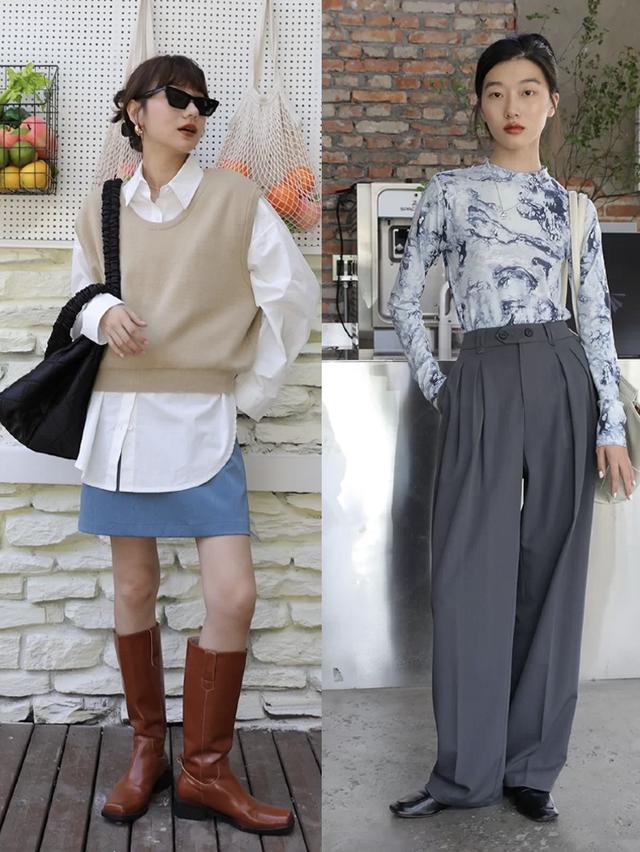 如果是职场的女性,下面选择长裤比短裤更合适,搭配长靴或者平跟马靴,一样英俊帅气。