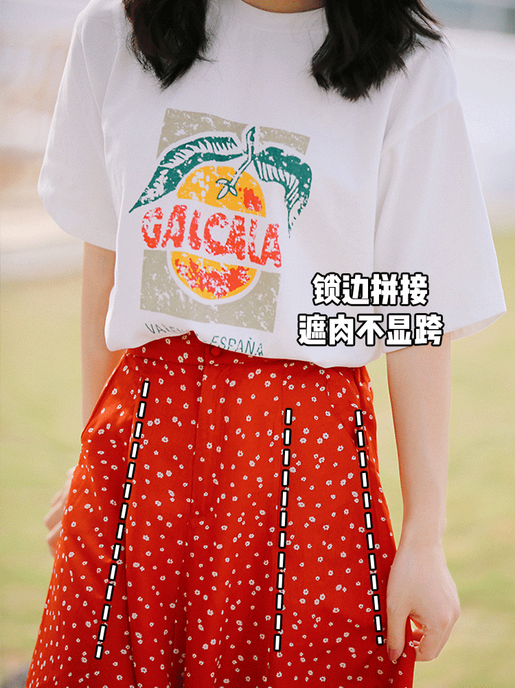担心雪纺裙贴身显胯宽的话,可以选锁边拼接的款式,代替一片式半裙,不仅更有型,而且梨形姑娘也不怕暴露胯宽。