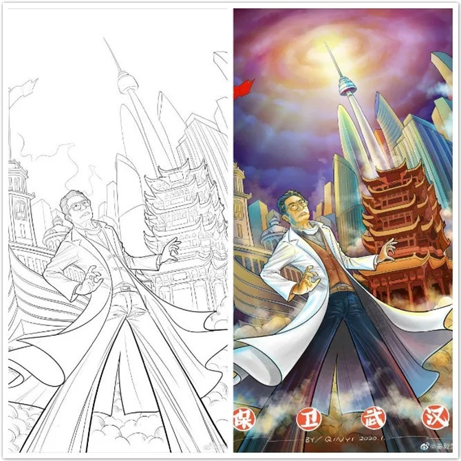 他表示,“为武汉加油的原创作品都免费推送到了公益平台,希望尽己所能做点贡献。”