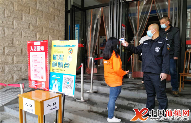 戴口罩、测体温、扫健康码、脚底消毒、手部消洗,顾客必须配合工作人员完成以上要求,才可入店。