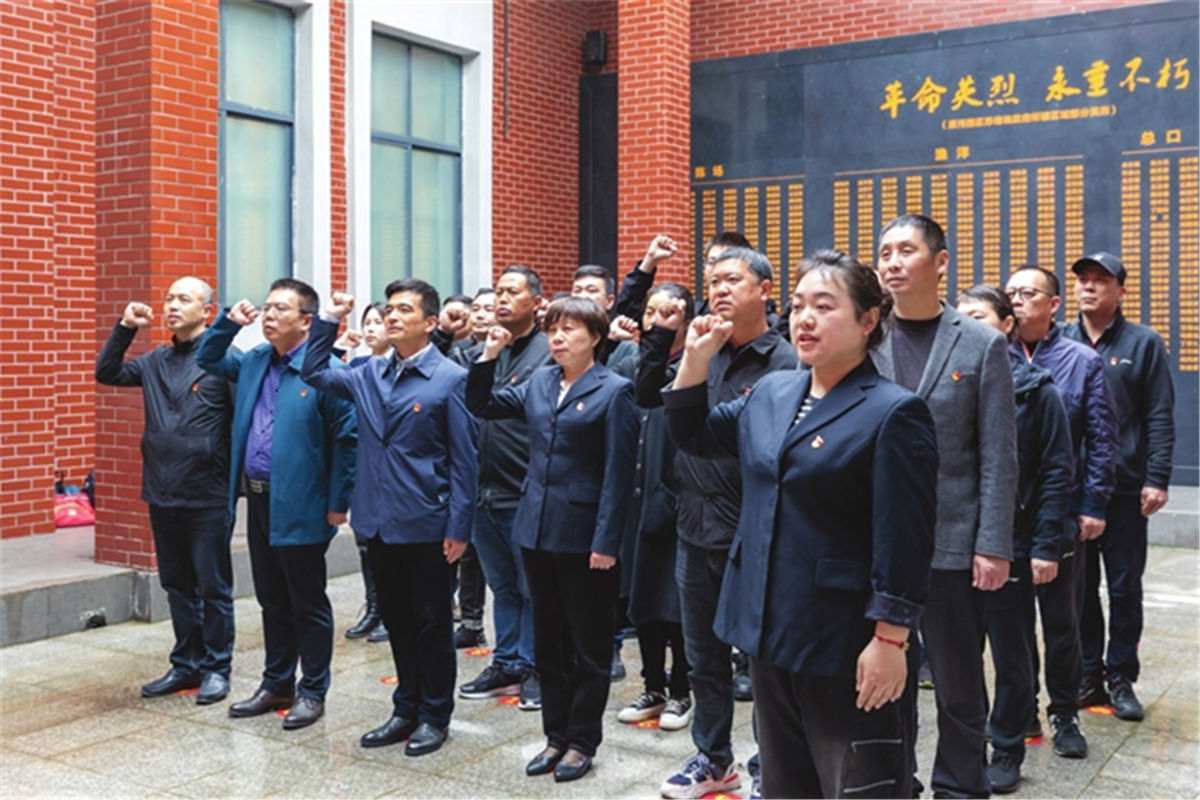 4月22日,记者到此采访时,正好遇到省计量院仙桃分院、潜江市商务局和本市沙湖原种场三拨团队,在这里开展学党史、缅怀先烈活动。人们统一着深色衣服、佩戴党徽,神情庄重、脚步轻缓,一路参观,一路聆听讲解。