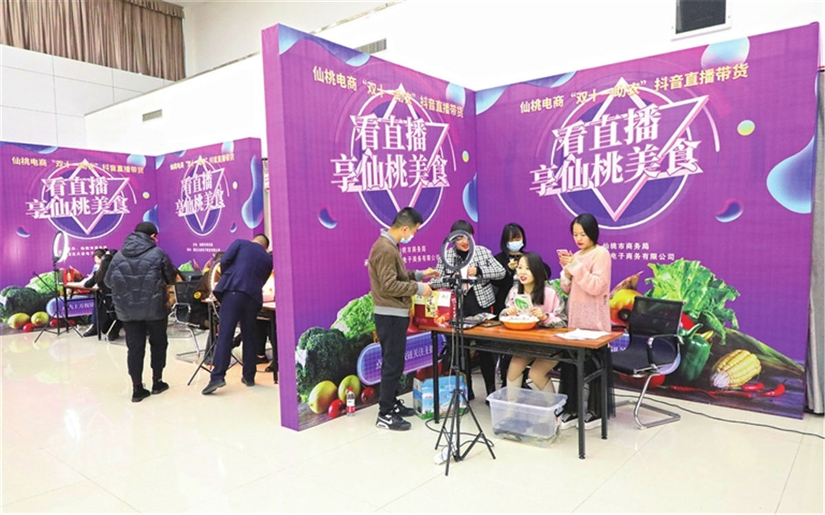 11月11日至14日,我市举行“双十一助农”抖音直播带货,销售农特产品。