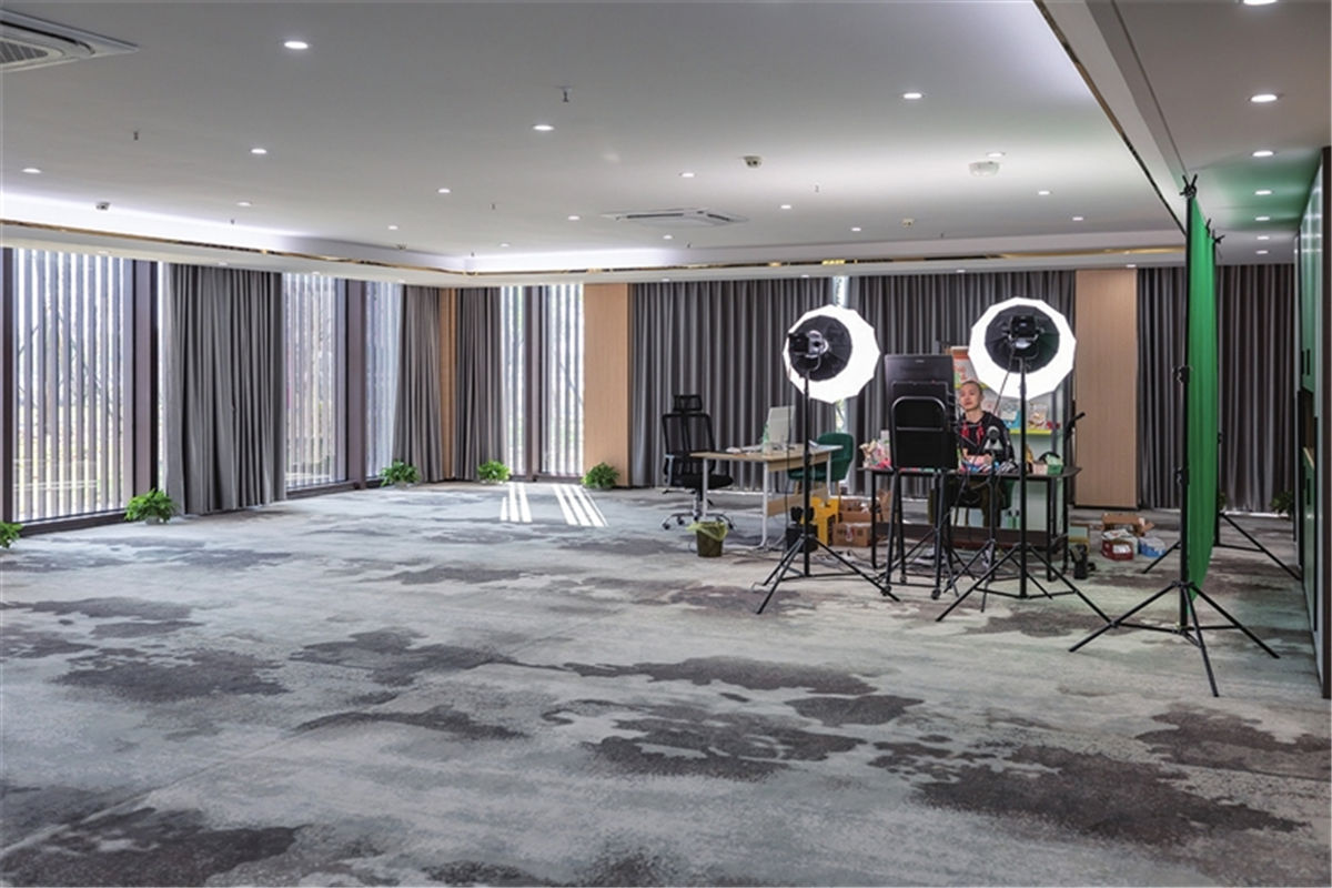 位于排湖风景区的未来精选全国电商选品中心湖北基地,主播正在直播带货。