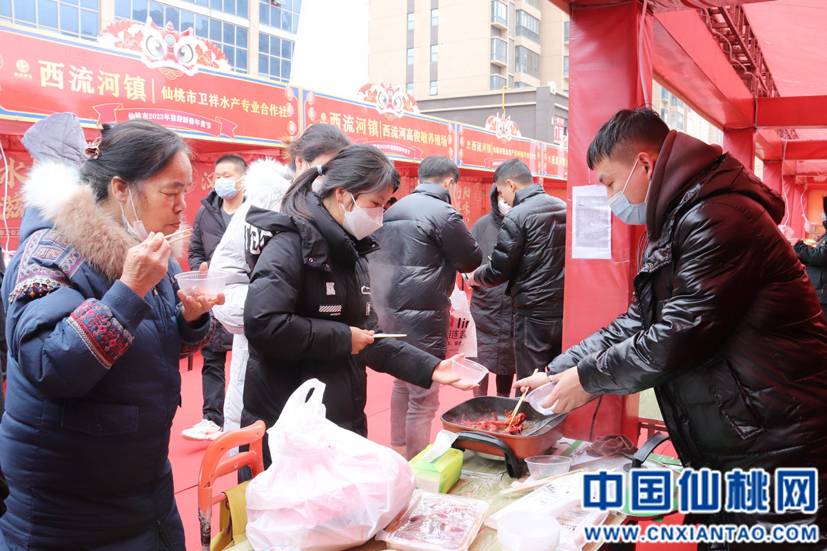 昨日下午,走进中国供销江汉平原农产品大市场,过年氛围感扑面而来,现场150个展位摆放各式各样的年货产品,现场游戏互动送礼品、免费试吃、大家玩得不亦乐乎,手上大包小包满载而归。据悉,当天一些展位食品现场被抢空,不少市民强烈要求预定,购买欲望溢于言表。图为,在湖北盛利食品展台位,一群“好吃佬”正排队试吃等候试吃。(仙桃网记者 黄芸)