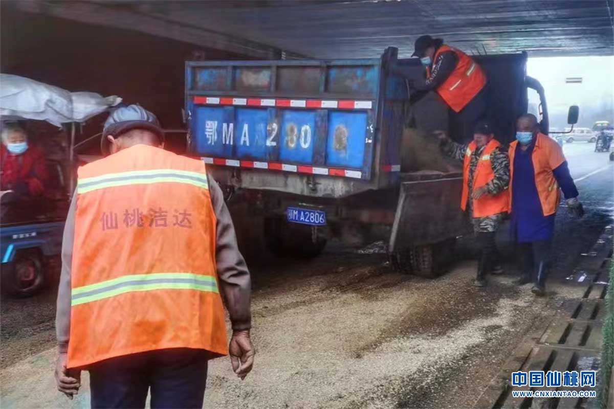 市环卫局接到上级部门通知后第一时间抽调环卫人员、车辆赶往现场处置。因遗撒点属高速涵洞处,车流量大,光线黑暗,污染每拖延一刻,都会对道路通畅和安全造成影响。为了与时间赛跑,环卫工人边扫、边铲、边冲、边运。经过半个小时紧张作业,点位基本恢复整洁,交通秩序转为正常。随后,市环卫局抽调大型冲洗车辆对该路段进行全面清洗,确保整条路段洁净如新。