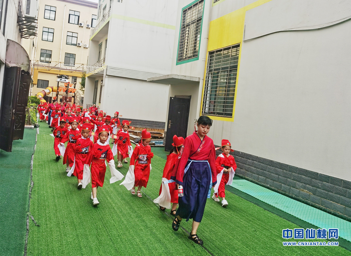 着汉服行典礼,三鞠躬谢师恩。6月20日,在市实验幼儿园(新城)校区,百余名萌童身着“状元服”,老师们亲自为孩子们带上“状元花”,庄严的完成了“跨三门”、“琼林宴”等环节。一场隆重的毕业典礼后,孩子们即将开启新的人生之路。(仙桃网记者 黄芸)