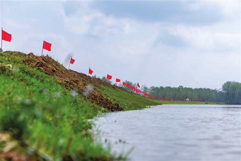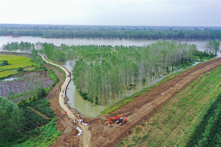 警戒水位下的东荆河大堤
