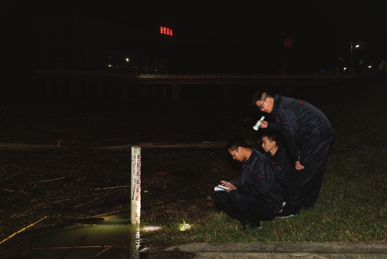 徐鸳泵站青年突击队观测汉江水位