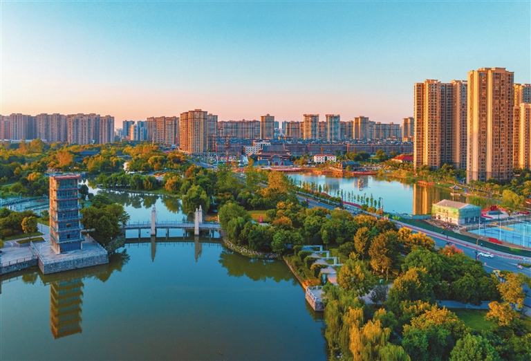 我市持续打响蓝天碧水净土保卫战,环境意识深入人心,生态环境质量显著提升。天蓝、水美、空气清新的美丽仙桃展现在市民面前。图为沔阳公园。 摄影 记者 晴霄