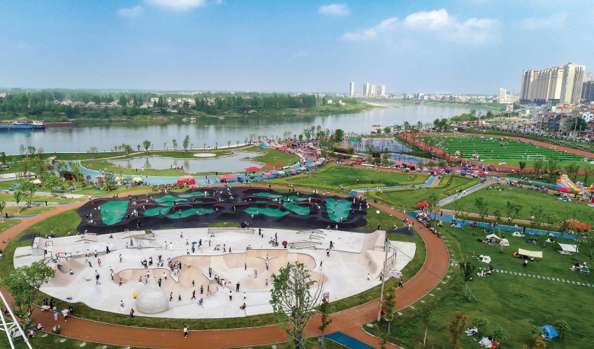 春光明媚,位于紫云里公园的大片绿地及江边地带,散落着各式帐篷,大人小孩沉浸在各自喜欢的休闲活动里,放风筝、尝美食、骑单车、聊天、散步等,享受轻松与愉悦的快乐周末假日。图为4月14日,轮滑广场上孩子们正在开心地玩耍。(摄影记者 郑恒)