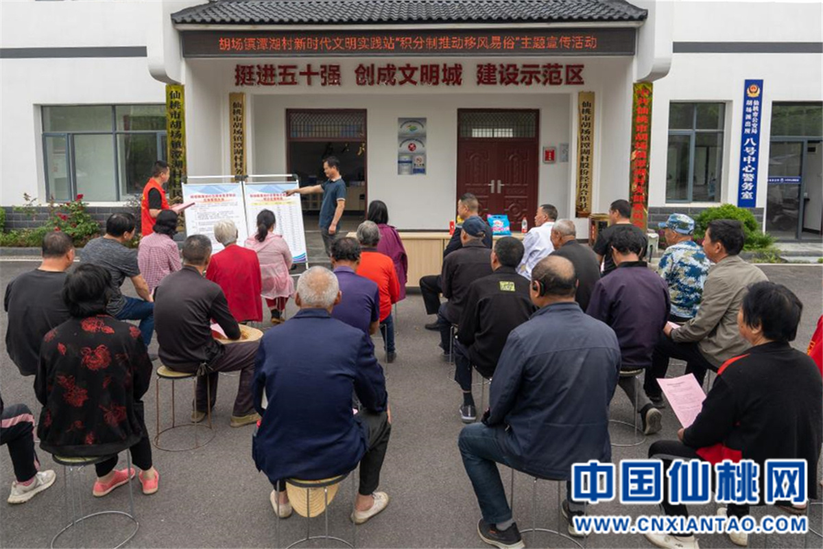 春日的胡场镇潭湖村,村庄干净整洁、庭院错落有致,俨然一幅静谧恬淡的水墨画卷。4月24日,潭湖村党员群众活动中心热闹非凡,胡场镇工作人员正在为村民讲解乡村治理“积分制”相关事宜。
