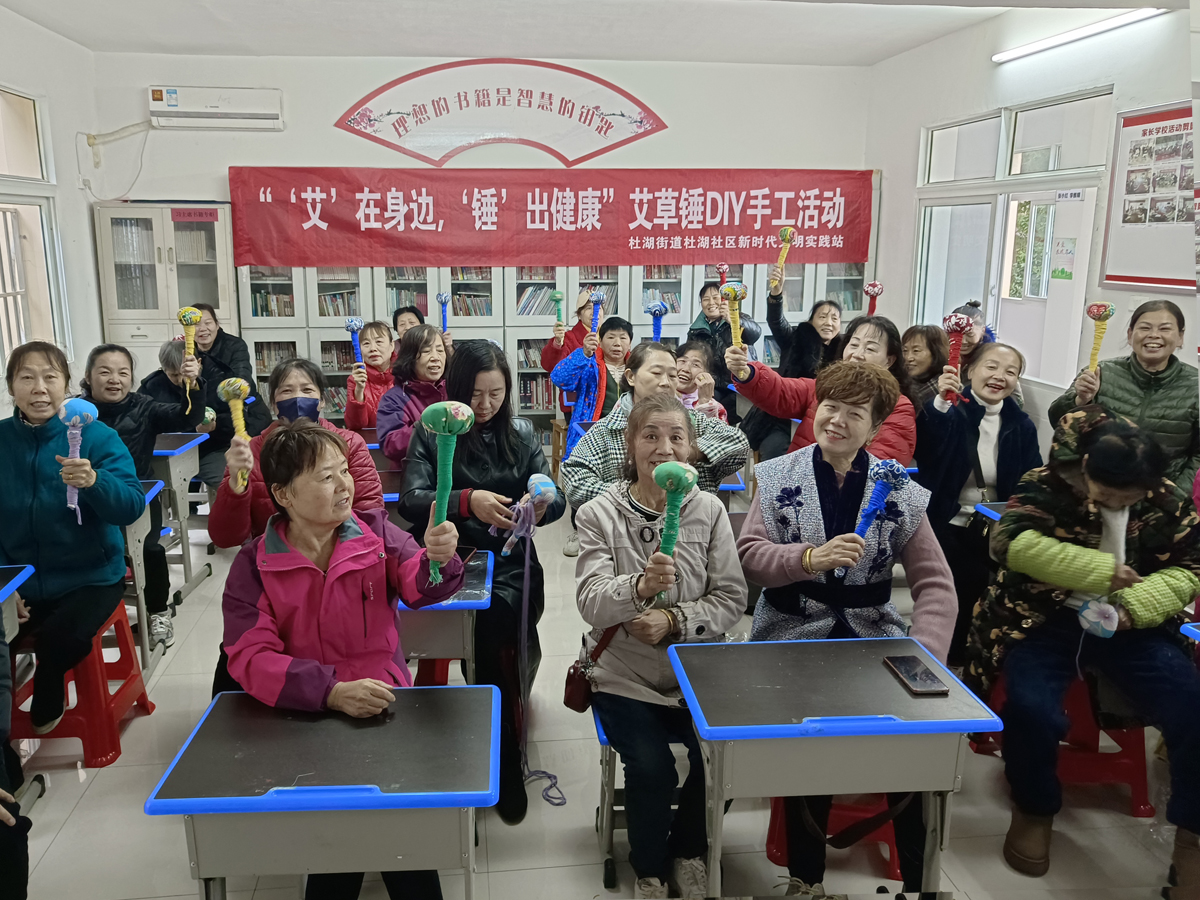 为让更多的人关注健康,享受生活,11月19日上午,杜湖社区新时代文明实践站在文化活动室开展“‘艾’在身边,‘锤’出健康”艾草锤DIY手工活动。