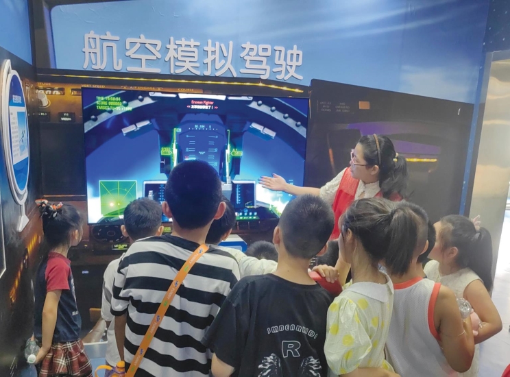 志愿者带领事实无人抚养儿童参观科技馆