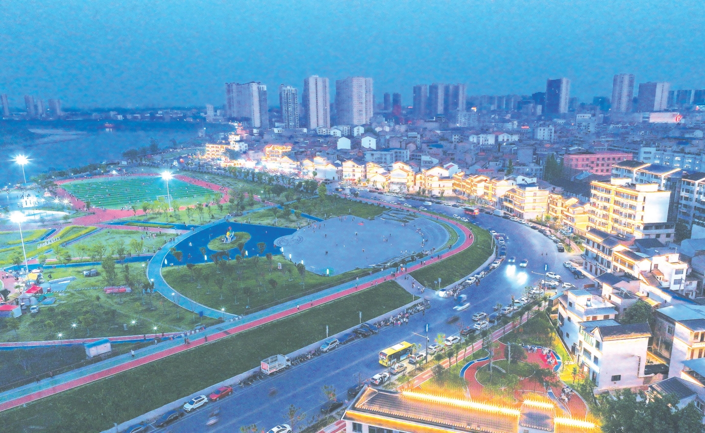夜幕降临,沿江大道灯火璀璨,夜经济热闹非凡。仙桃积极培育夜间经济新活力,打造多元消费新生态,让市民与游客在璀璨夜色中尽享“烟火气”,激发消费新活力。图为4月27日,汉江奥运公园鸟瞰。摄影记者郑恒