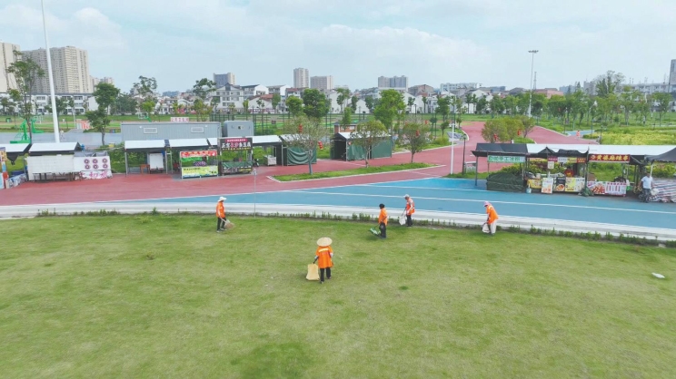 入夏后,公园日均客流量突破1万人次。为应对夜间高峰,该局全面升级环卫服务:将夜间保洁员从4人增至8人,推行“网格化+动态巡查”机制,确保垃圾即见即清;在夜宵聚集区、运动广场等人流密集地新增近20处垃圾投放点,配合“凌晨深度清扫、日间高频洗扫、夜间动态捡拾”的全天候作业模式,实现人工保洁与设施优化“双管齐下”。