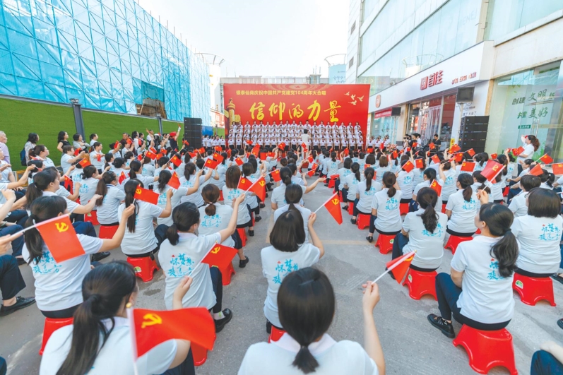 年年唱响红歌,庆祝党的生日,已成银泰仙商的“规矩”。7月1日清晨,“信仰的力量”银泰仙商第十四届合唱节启幕,1000余名职工在嘹亮的红歌声中,深情献礼中国共产党成立104周年。