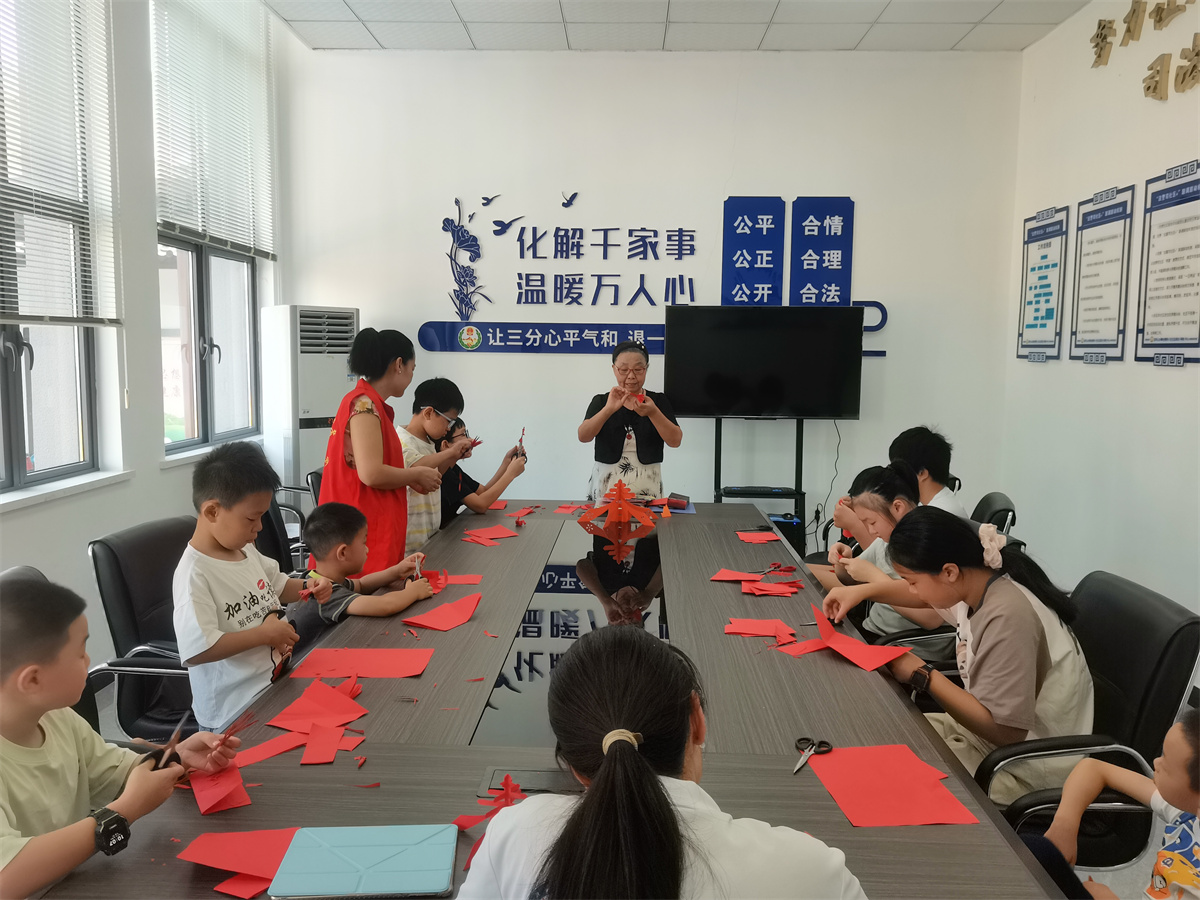 为弘扬中华优秀传统文化,丰富辖区青少年儿童暑期生活,7月31日,龙华山街道黄荆小区社区组织开展“非遗传承 妙剪生花”暑期青少年剪纸活动,让孩子们近距离体验剪纸艺术的魅力与乐趣,锻炼动手能力。