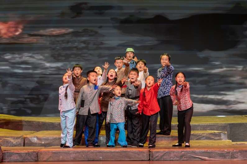 当日下午3时,灯光渐渐暗沉,小演员陆续登场,演出正式开始。台下观众瞬间安静,沉浸观剧。“特意带着孙女来感受抗日战争年代的艰辛与不易,很有教育意义。”提前2小时就到达演出现场的市民王群枝感触极深。