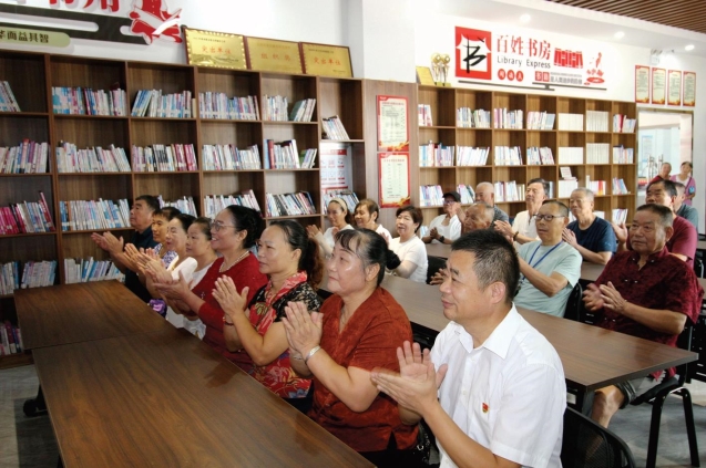干河街道满庭春社区活动室座无虚席,居民们守候在电视机前观看阅兵仪式,深刻感受到了祖国的日益强大,增强了民族自豪感和凝聚力,也更加珍惜来之不易的和平生活。