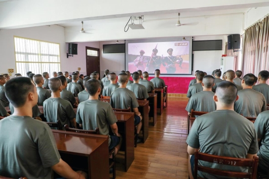 市人武部组织预定新兵集训队集中收看九三阅兵直播。摄影 记者刘贤双