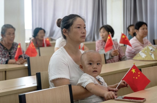排湖旅游度假区密塘渔村村民收看九三阅兵直播。摄影记者陈亚东