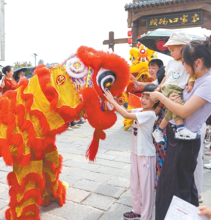 去年4月,袁市村启动改造。设计施工团队以《袁家口往事》为蓝本,将古街巷道、水乡港口、田园村落等元素相融,着力复刻市井场景。如今,吊脚楼群、看台码头依次落成,沔阳花鼓戏、魔术杂技、舞狮快闪等节目轮番登场,游客沉浸式体验“吃、行、游、购、娱”于一体。