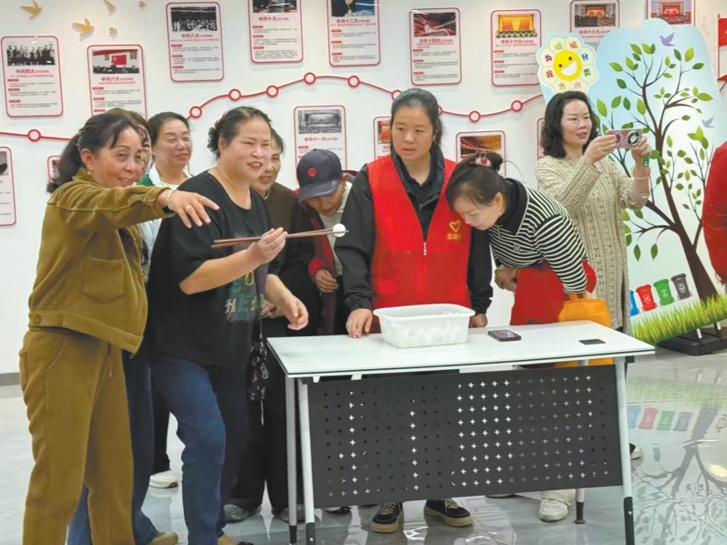 “分类对对碰”互动游戏将现场气氛推向高潮。居民分成两组,在场地一端用筷子夹起写有垃圾名称的乒乓球,快步走向另一端的四分类垃圾桶进行准确投放,完成后迅速返回交接。大家在协作与竞技中进一步加深了对垃圾分类规则的记忆与理解。(记者 黄芸 通讯员 邵帅)
