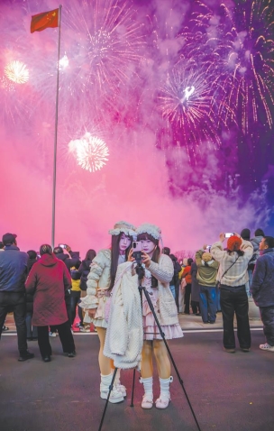 第三篇章更显城市之美,孔雀开屏般的焰火舒展羽翼。家住沙嘴街道的杨勇和家人迅速举起手机,捕捉光影流动的轨迹。女儿捂着耳朵,却舍不得移开目光。“我们家已经连续四年来观赏焰火,这里离家近,家人平时也喜欢到这里遛弯。附近还有沔阳里商圈,很热闹。”杨勇说。