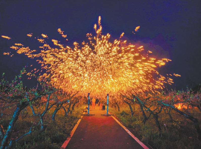 活动精准定位游客需求,精心打造日间与夜间双重体验场景,让游客全方位、沉浸式感受乡村春日魅力与本土人文底蕴。活动巧妙串联起白日的“烟火气”与夜晚的“文化味”,既通过农产品展销、非遗展示及亲子游乐集聚了日间人气,又以打铁花、风火轮、烟花瀑布等精彩夜演引爆乡村夜经济的文旅消费新模式。