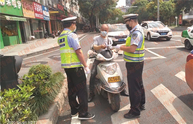 “大家出门都记得戴口罩,却不记得戴头盔,这可都是涉及到生命安全的大事情!”6月1日上午9点多钟,市公安局交警支队二大队民警在车站路口,拦住一名没有戴头盔的摩托车驾驶人,查纠违法行为。